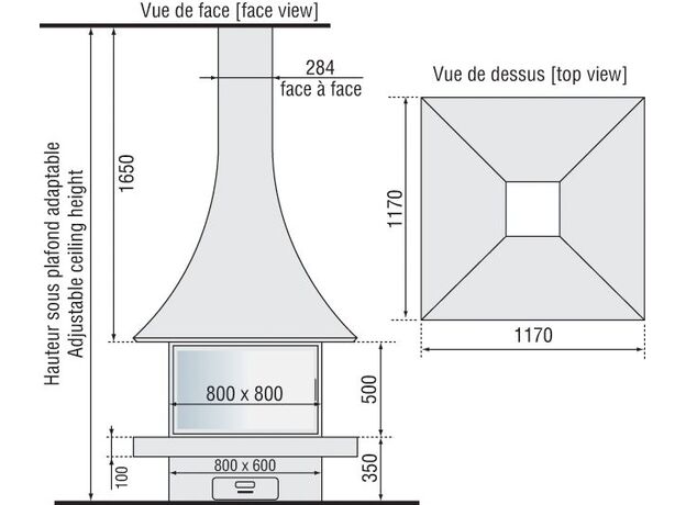 Дизайнерский камин Bordelet Julietta 985 Центральный со стеклом