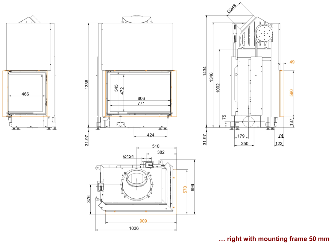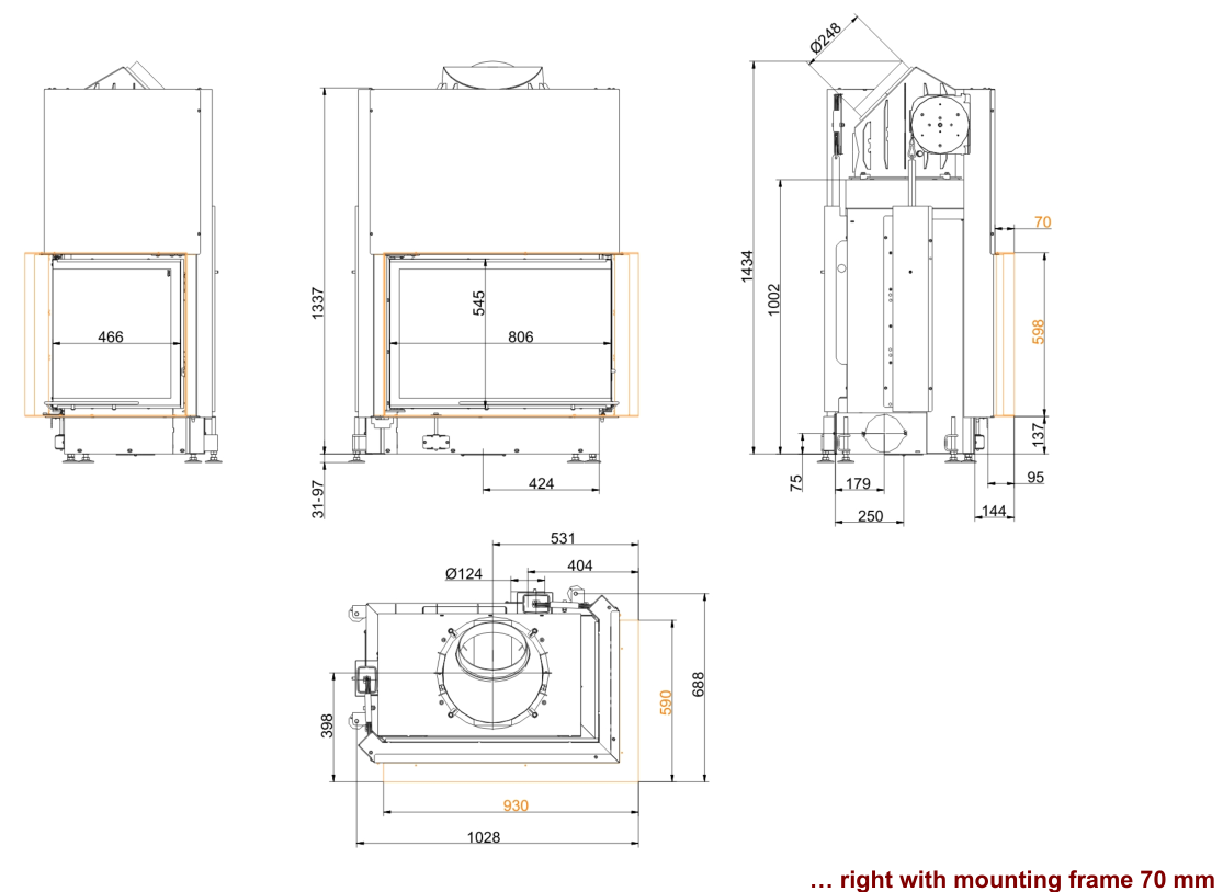 Каминная топка Brunner Eck Lift 57/82/48 Right