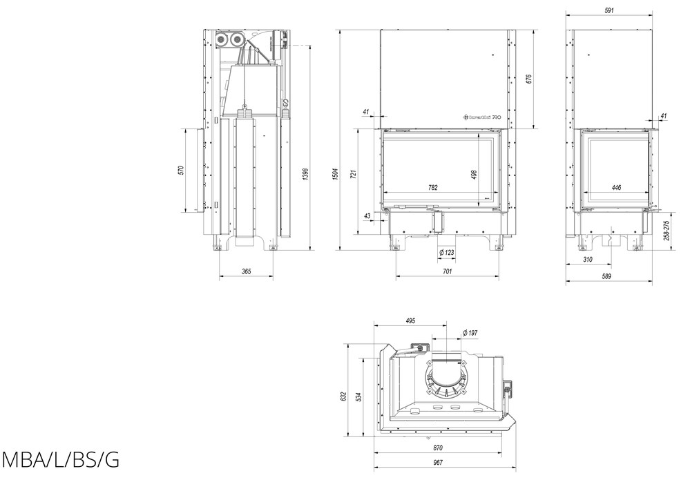 Каминная топка Kratki MBA 17 L/BS/G