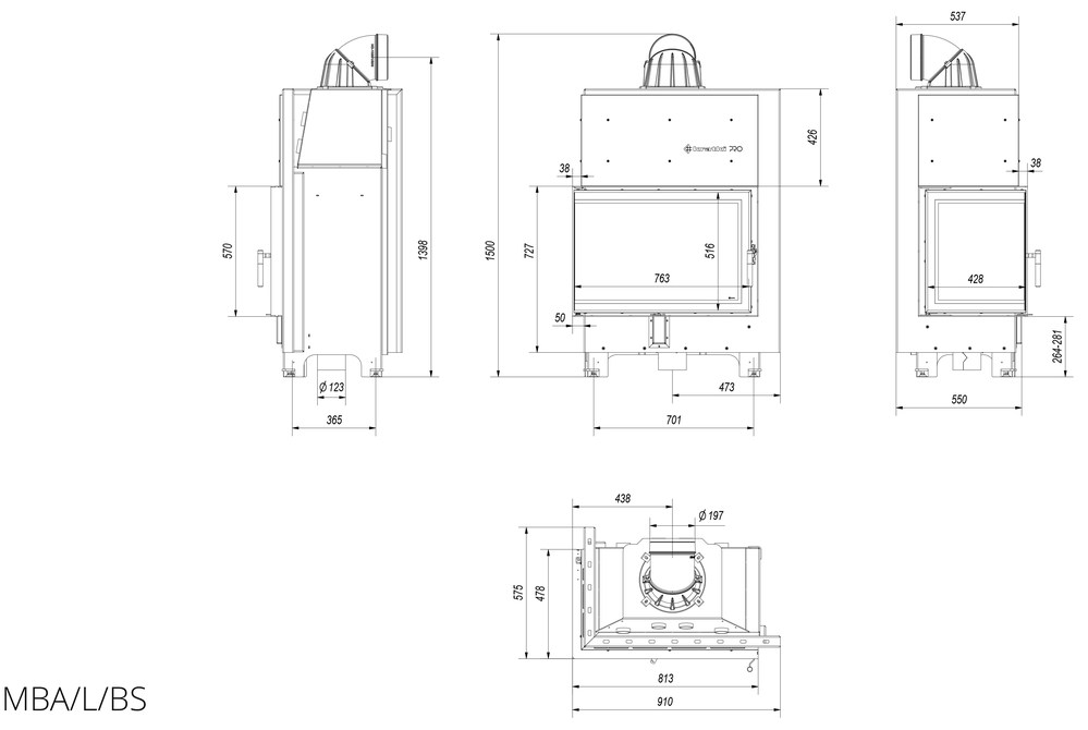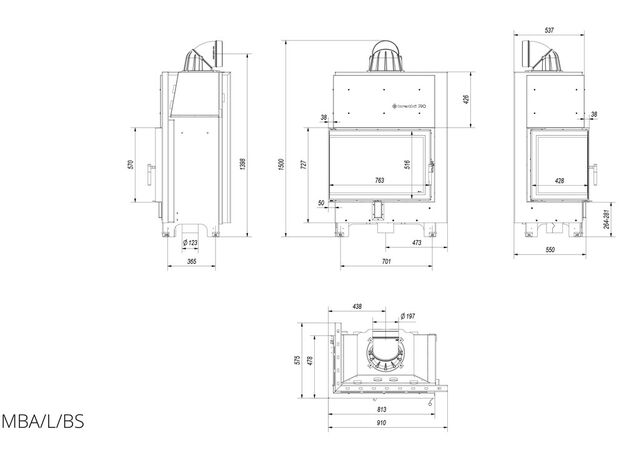 Каминная топка Kratki MBA 17 L/BS