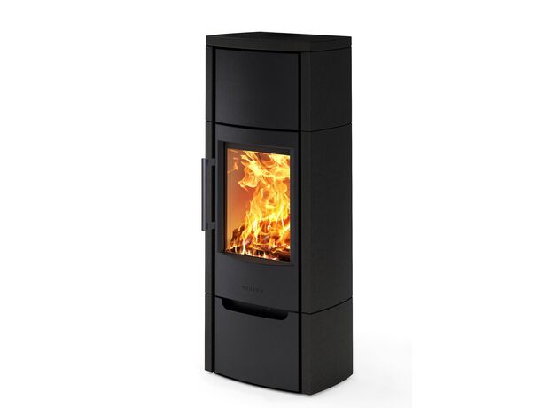 Качественная скандинавская печь с большим стеклом и умеренной мощностью.