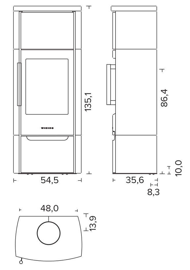 Габариты. Печь не занимает много места, не требует большого пространства для установки. При этом Wiking Miro имеет огромное остекление. Для установки печи не нужен фундамент. Её можно устанавливать на любой тип полового покрытия. В том числе на деревянные полы или на ламинат. Нижняя часть Викинг Миро не нагревается СОВСЕМ. Для защиты от возможного попадания случайных угольков на пол мы укладываем перед печью небольшой стальной или стеклянный притопочный лист.